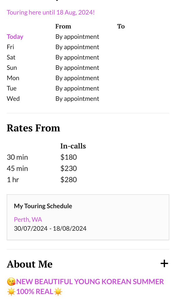 On p.p. a review summed up by this :Summer Summer | Perth Escort - Escorts and Babes