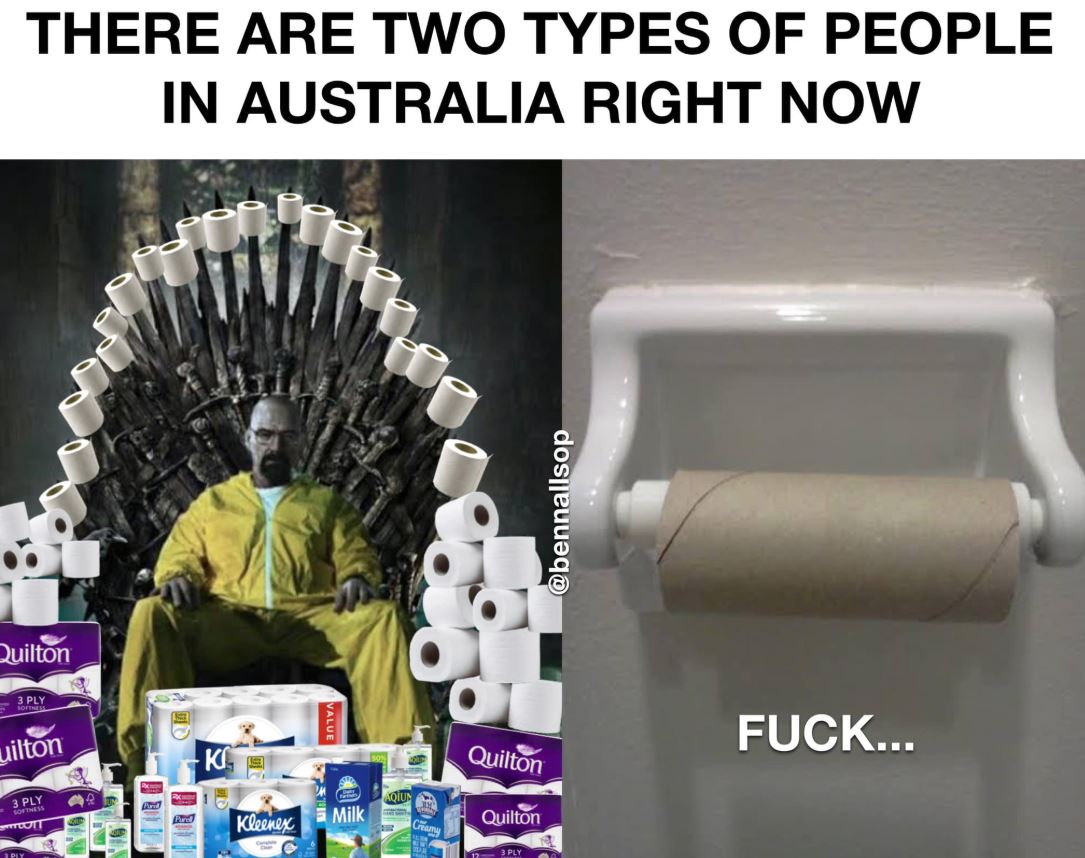 Australians trying to beat Corona Virus by buying trolleys of toilet rolls!