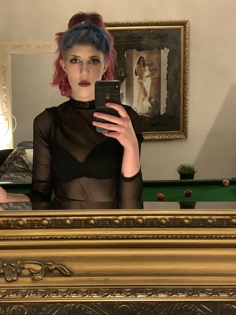 Just a glimpse of her pastel green locks...