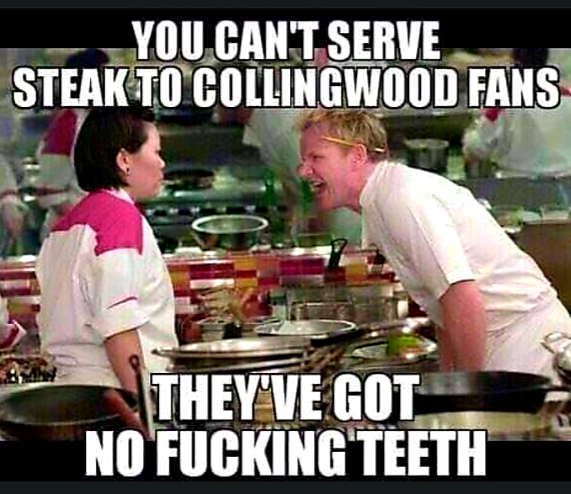 I saw a Collingwood fan with a job the other day, so I said congrads he said what for, I said you are working he said with a smile .. hmmm This is day release...