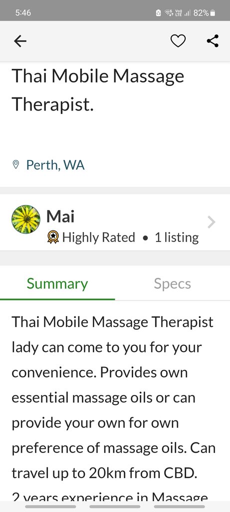 She's going to have forearms like Popeye soon 💪 It sounds like she does the Thai karsai massage which I've experienced before and I really enjoy. Am in Westminster did a great one when she first started and I have had the odd one since. Gina in West Swan and that place in Midland, Ganyapa? advertise it but they were both pretty underwhelming. Would love to try this lady but so far she's been booked out. Hope her health insurance is up to date. Gives a new meaning to extras cover. 😀