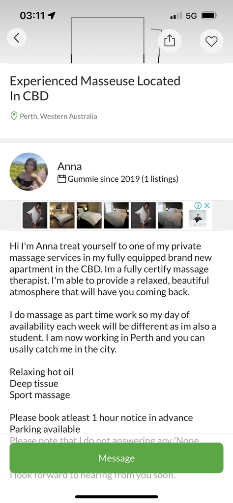 Visited Tara last year.. was on Locanto, not sure if she still advertises. Wasn't a bad visit.So next week gonna be in Mandurah for work couple days and after that will be goin like once a month for work so does anyone have any recommendations for private “legit” ladies that give a good massage but will cough up extras? Can’t put a lot of work into a lady so far away to gimme the regular treatment but wanna plant a seed while I’m there so I have something to work forward lol