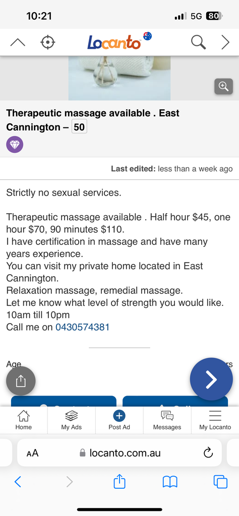 Tried 2 Saturdays ago when I was in the area. Not usually convenient for me. Middle aged Asian lady. Pretty good setup in large back room of house. Proper table and I got an hour of remedial for $70 as per the ad. Communication was quick and easy. Massage pretty decent technique and strength without being great. Friendly lady and not too chatty. I didn't ask about extras but really just after a massage and to get a feel for the place. I agree the relaxation option combined with the late hours is usually a sure sign but I didn't get that vibe. My appointment was mid afternoon. Doesn't mean that it's not on the cards, as always YMMV.Also anyone have intel on this add? Says non sexual but open till 10 which to me normally a tell, but with gumtree no longer useable I am seeing more actual legit places advertising
