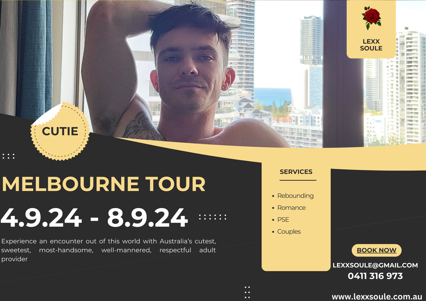 To make a booking enquiry please email lexxsoule@gmail.com or SMS 0411 316 973.