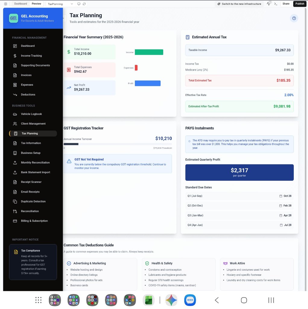 The Deduction Guide: This is the heart of it. The app has a section that clearly breaks down exactly what you can claim (e.g., stage-wear, consumables, advertising). It summarises the often-confusing ATO rules into plain, actionable advice, even covering things like depreciating assets.