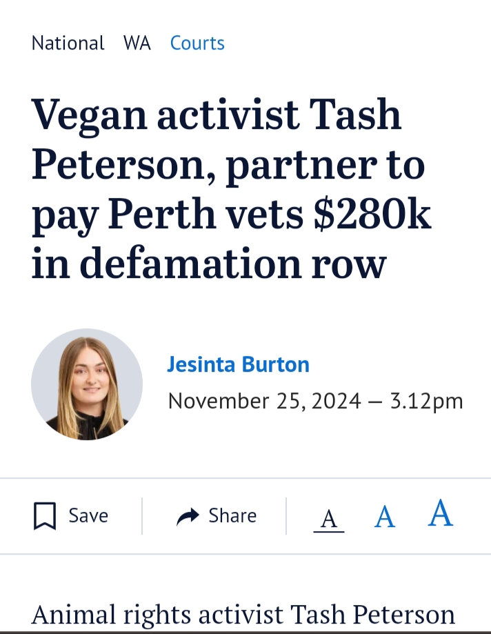 $320k in damages plus court costs. No laughing matter.From what I have read on Facebook the vegan girl has declared bankrupt after losing a court case.