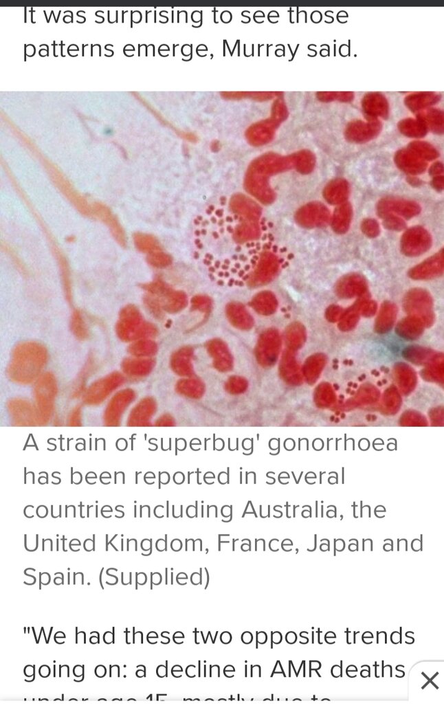 It's becoming a serious problem for all of those who enjoy sex. Drug resistant bacteria . Be careful where you stick your willy .