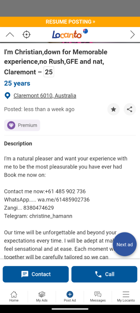 Yes I'd stay away from using telegram and zangi as if they don't use a Australian mobile phone number as their contact. Then they are a scammer in another country as they don't have a Australian mobile phone number because they aren't in Australia as they are only scammers. That's my advice for telegram and zangi as they choose to use because of their scams. As I have been burnt by many scammers who say that they are in Australia. But they are not.Sure thing, as soon as she dropped her price from $500 an hour to $200 it was BS... No deposit though so expect nothing good happens to people that turn up