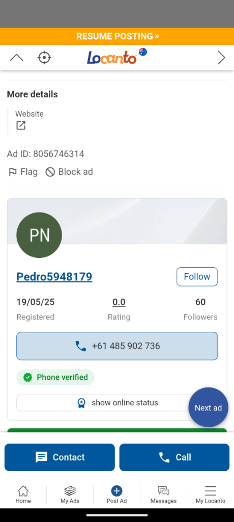 This is PedroRed flags all over this one, zangi, WhatsApp business account, posted by an account called Pedro, a bunch of different women in ads all over the country.
