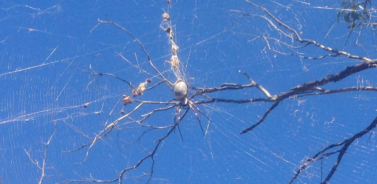 I used to see them when I rode in the forest in Hackets Gully - trouble with being on horse back you ride face first into em - and their webs are like fishing twine!! Horrible! My daughter and I used to mark all the tracks were we saw them bu putting a red ribbon around the tree before start of track - that way we avoided it lolWhere I go running regularly in the local forest, there are Orb spiders that make huge webs across the tracks and unless you're specifically looking for them, you're liable to run face first into one. This is a pic of one i took last summer after I'd run through it's cousins web and reacted similarly to you H2....