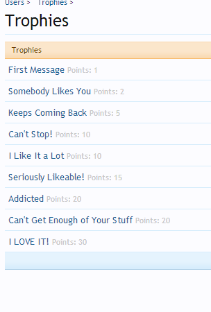 These are the trophy points that are set automatically. I still don't understand how it totally works and would value suggestions from members.I think every new thread should be awarded points on content, which would mean we would have to moderate new threads.